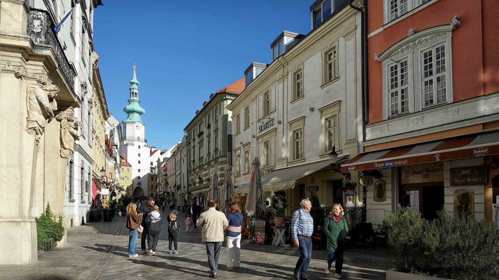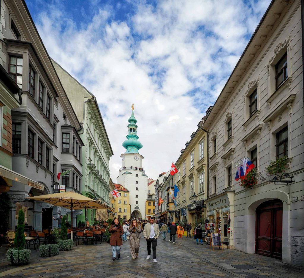 Entlang der Michalská ulica bis zum Michaelertor und rund um den Hauptplatz (Hlavné námestie) mit dem Alten Rathaus zeigt sich Bratislava von seiner lebendigsten Seite. Von fast überall sichtbar ist zudem die Bratislavaer Burg, die hoch über der Stadt thront.