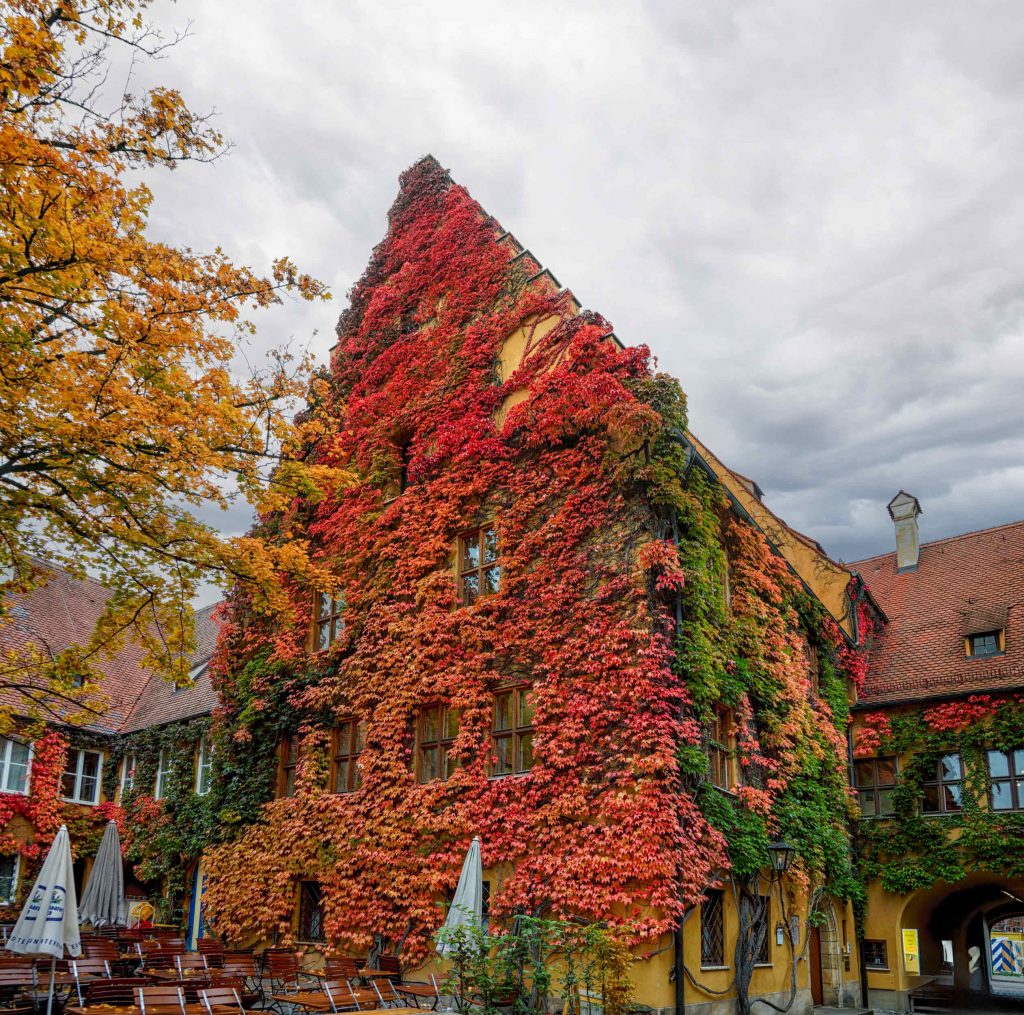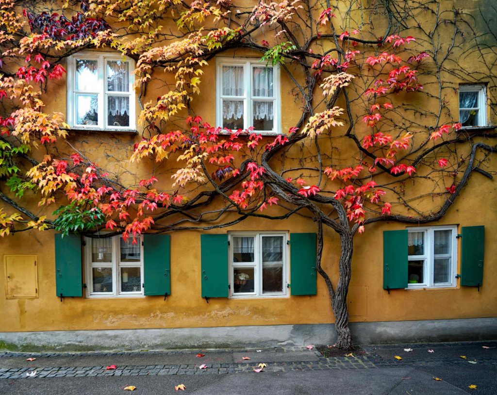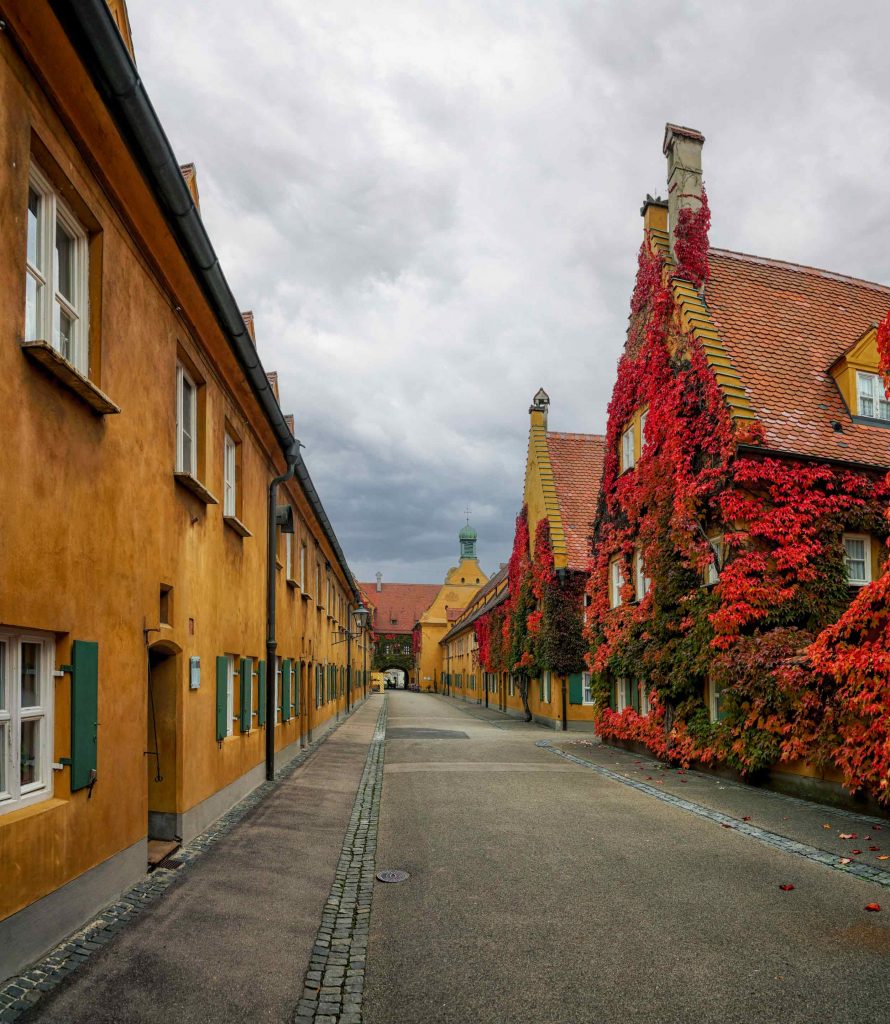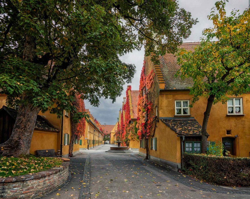 Besonders im Herbst ist ein Spaziergang durch die Fuggerei ein stimmungsvolles Erlebnis.