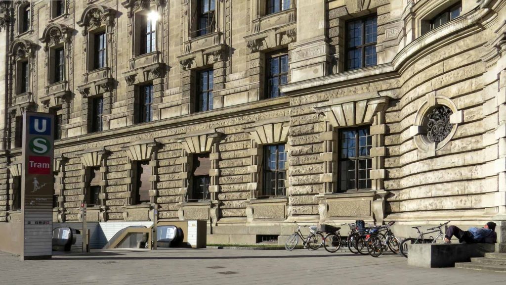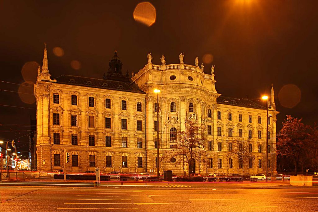 Betritt man die Eingangshalle des Justizpalasts in München, spürt man sofort die besondere Atmosphäre dieses Ortes. Das hohe, lichtdurchflutete Gewölbe, die kunstvollen Geländer und der symmetrische Aufgang verleihen dem Raum eine nahezu theatralische Wirkung. Hier wird Architektur zur Bühne für Gerechtigkeit, Geschichte und das beeindruckende Zusammenspiel von Raum und Licht.