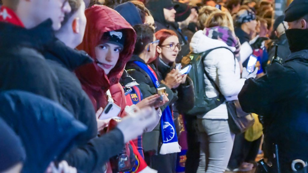 Auch abends rund um das Stadion, vor dem Champions-League-Spiel zwischen Kopenhagen und Barcelona am 28.1.2026, herrschte eine großartige Stimmung. Selbst die Einfahrt der Barça-Busse mit den Spielern konnte ich hautnah miterleben.