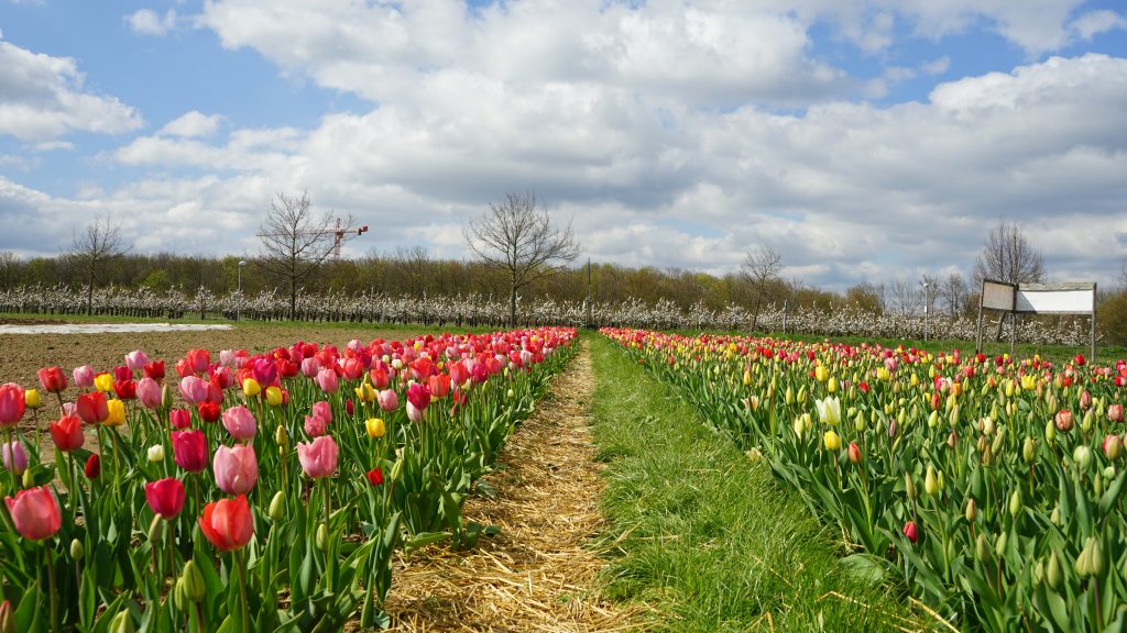 Tulpen sind eines der ersten starken Farbzeichen des Frühlings. In langen Reihen und kräftigen Farben verwandeln sie Felder in lebendige Muster.