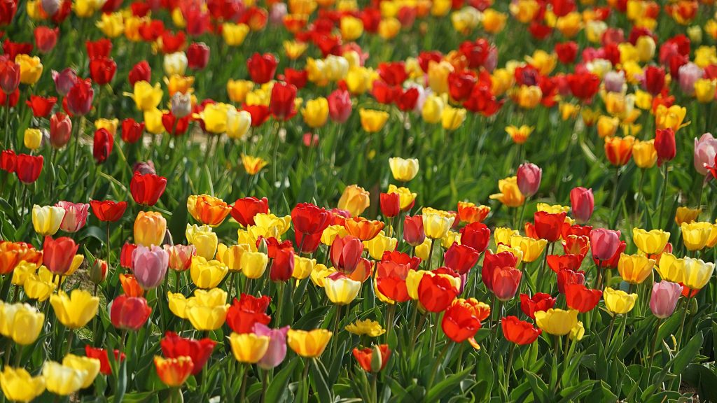 Auch in Klein-Winterheim bot sich mir ein beeindruckendes Bild: leuchtende Tulpen in allen Farben und das intensive Gelb der Rapsfelder, das in der Sonne förmlich strahlte. Und zum Schluss habe ich dann noch in unmittelbarer Nähe eine Gänseblümchenwiese entdeckt.